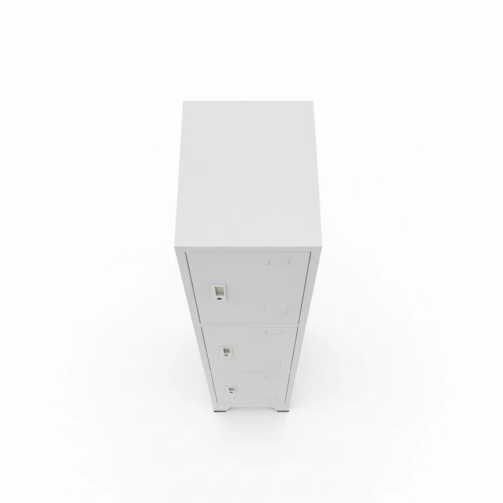 Dieser Metallschrank bietet eine sichere Aufbewahrungslösung mit abschließbaren Türen. Die Lüftungsschlitze sorgen für ausreichende Luftzirkulation, wodurch er für Kleidung und andere Gegenstände geeignet ist. Der Schrank ist aus pulverbeschichtetem Stahl gefertigt, was ihm Stabilität und Langlebigkeit verleiht. Der einfache Aufbau und die Möglichkeit, den Schrank an der Wand zu befestigen, erhöhen die Sicherheit. Praktische Halterungen für Namensschilder erleichtern die Zuordnung.- Metallschrank mit drei abschließbaren Türen- Geeignet für unterschiedliche Einsatzbereiche wie Schulen und Büros- Wandmontage möglich zur zusätzlichen Sicherung- Optimale Belüftung durch Lüftungsschlitze- Einfache MontageMaterial: Stahl, pulverbeschichtetFarbe: Grau